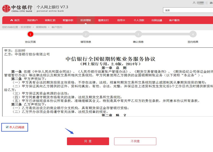 選擇投資理財(cái)-銀期轉(zhuǎn)賬-客戶簽約。