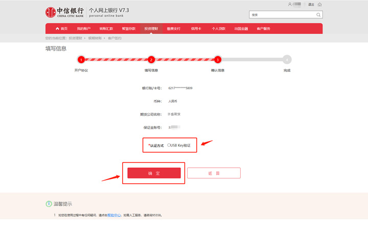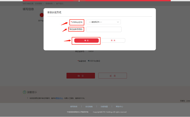 選擇USBKEY證書-輸入保證金賬號(hào)密碼-確定。