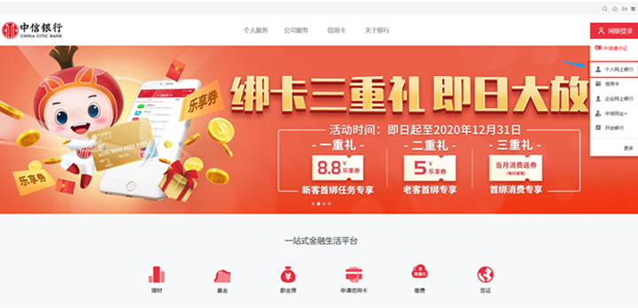 登錄個(gè)人網(wǎng)上銀行。